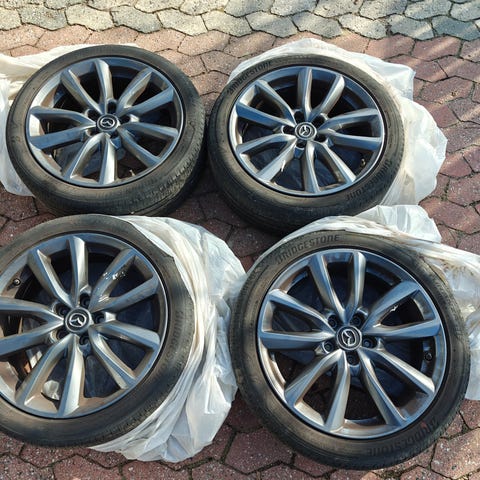 Originale Mazda alufælge inklusiv Mazda TPMS ventiler. 7x18 . Offset 45 mm. Monteret med sommerdæk: Bridgestone Turanza T005A. 215/55 R18 95H. Fra 2020. Har siddet på Mazda CX-30. Pris fra ny: 20.500,- .