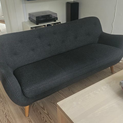 Trepersoners sofa i Jeansblå kraftigt stof. Ingen brugsspor.