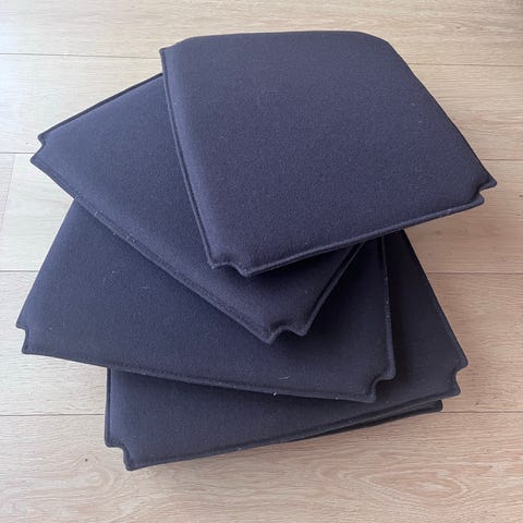 Meget fin og ubrugt Wegner CH25 hynde i den velkendte originale farve for 290A- Hallingdal 723 blåt uldstof af fineste kvalitet. Uden brugsspor og med en rigtig god polstring. Ny pris 1.145 kr.