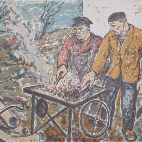 Retro vintage art deco litografi af Peter Abelin. Kæmpestort 100x70 cm. Signeret - og fra 1991 i metal guld ramme. Abelin har udsmykket flere væggavle i København - bl.a. den berømte på Sønder Boulevard.