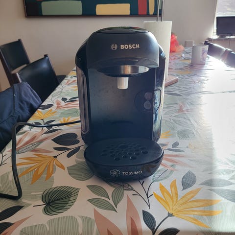 Kaffemaskine i sort. Skal rengøres.
