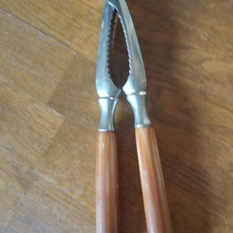 2 retro nøddeknækkerer i brun og rød plast