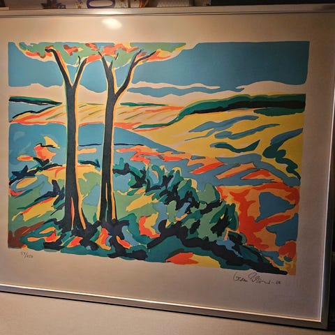 Litografi af Gorm Eriksen, der forestiller en bi. Signeret Gorm Eriksen 92 og nummereret, mindre fugtskjold i hjørnet men ikke i motivfeltet, i glas og ramme