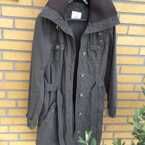 Elegant, grøn jakke med militærinspireret design. Jakken har en høj krave og er dekoreret med sølvfarvede knapper på fronten og skuldrene. Den har også dekorative lommer foran. Jakken har en figursyet pasform.