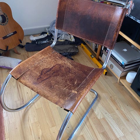 Stolen er brugt, men i god stand. Få kosmetiske slid og trykmærker. Nyprisen ligger typisk omkring 8-10.000, så her er muligheden for at få et par designerstole til en virkelig skarp pris.