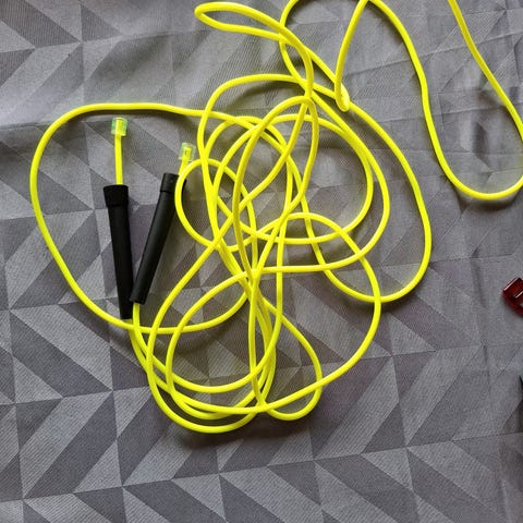 Ultralet sjippetov med stålwire (længde 3 m), inkl. ekstra wire og transportpose, brugt få gange.