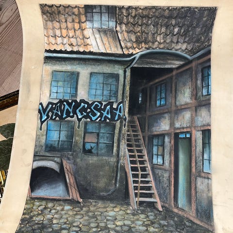 Et skønt motiv malet så livagtigt, så man næsten kan mærke byens lyd og sanseindtryk!