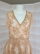 Tunika/kjole med masser af glitrende sten, perler, tyl- og blondestof.
