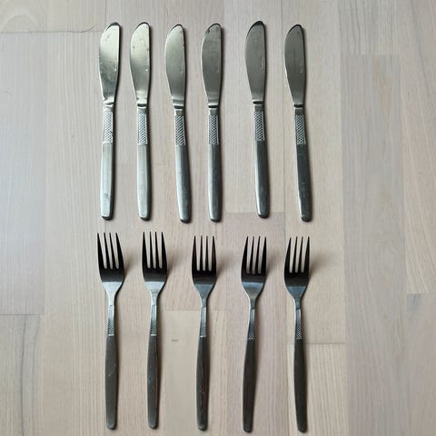 4 knive, 4 gafler og 4 skeer