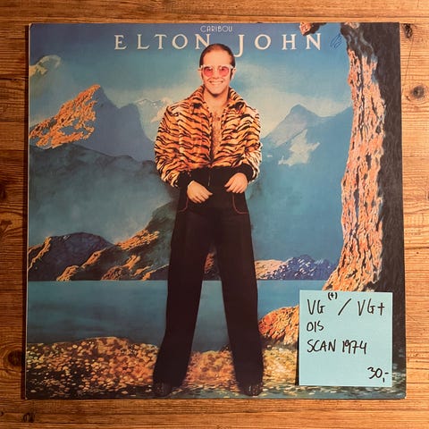 Elton John Caribou LP UK 1974 med OIS. Cover VG +. Vinyl VG +.