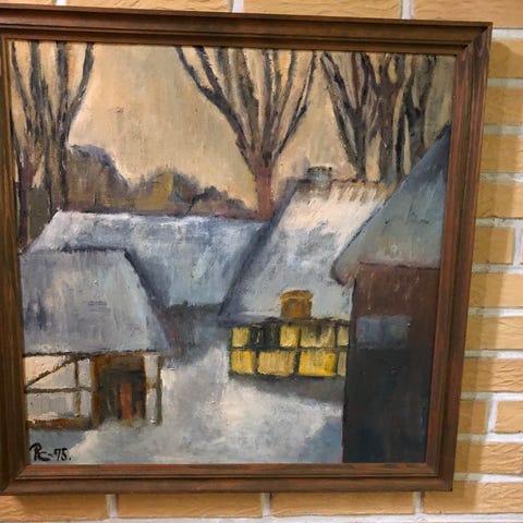 Ca 37•25. På masonit. Afskedsgave fra arbejde i 1995. Kan hentes i Aalborg.