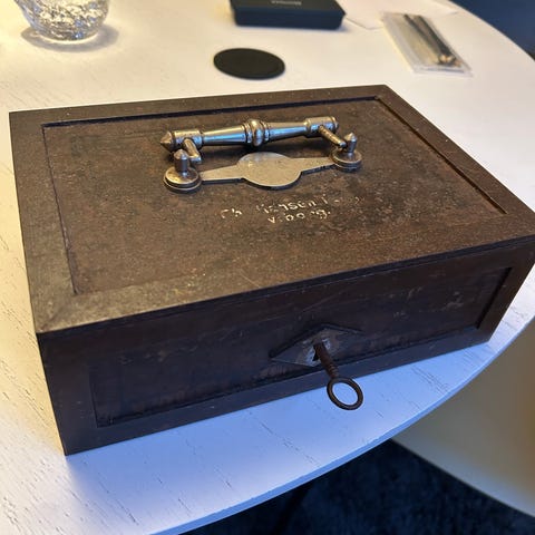 Pengekiste i metal fra Gavnø Slot, 74 cm x 55 cm x 55 cm