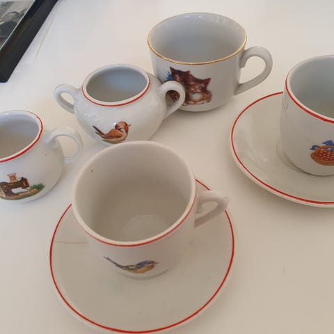 Obs. en lille hank er gået af og der er et skår i flødekanden, resten ser ud som nyt.