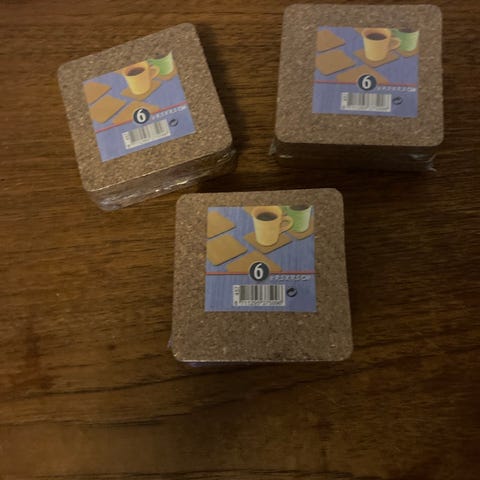 Hjemmelavede bord skåner. Store ca ø 18. Små ca ø 9. Kun de viste farver tilbage. Stor pr stk 50kr - små pr stk 30kr. 1 blå og 1 brun solgt