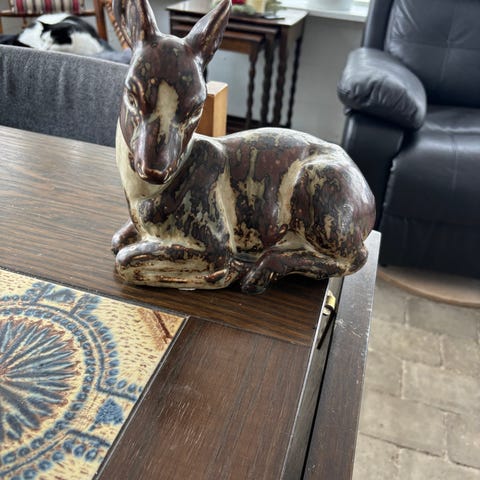 Figuren er i 1. sortering og i fin stand (kun brugsspor i bunden). 25-26 cm lang og 17 cm høj.