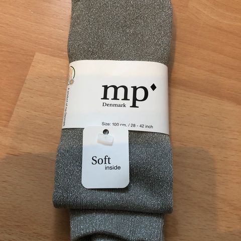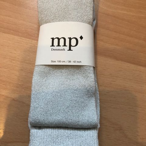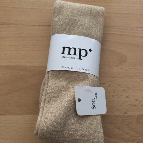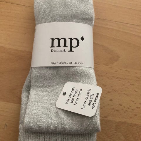 Helt nye strømpebukser fra MP sælges .De er aldrig brugt - aldrig vasket . Det ene par er guld glimmer farvet og det andet par er glimmer sølvfarvet . Begge par er i str 90 = 2 år .