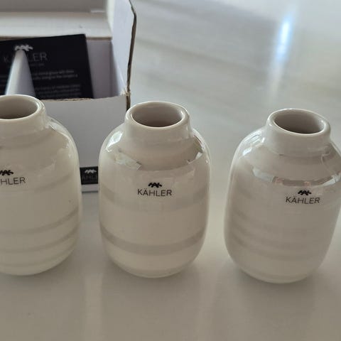 3 Kähler mini vaser i sort, grøn og lyserød. Nye aldrig brugt. Højde 8,5 cm.