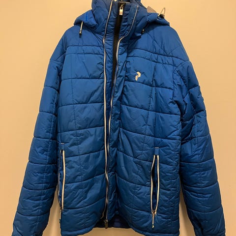 Kun brugt til hverdag og ikke på skiture. Har brugstegn bl.a små slidhuller som det fremgår af foto. Lynlåsen kan drille. Men lækker skijakke fra Peak Performance til få penge