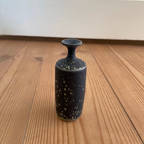 2 små vaser og 1 miniature. Rolf Palm er limet ved halsen, den har en front hvor det næsten ikke kan ses. Den højeste vase måler 11 cm høj. Prisen pr. stk. er 75 kr. Den mellemste vase kender jeg ikke signaturen på.