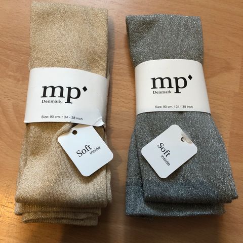 Mp strømpebukser med guld glimmer sælges . De er kun brugt 1 gang til fotografering . De er i str 80 = 1 år . De er som nye . De sælges for 40kr