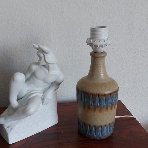 Anden bordlampe, ?, ‘Egern lampe’. Nok nærmest den eneste, du kan købe brugt af sin slags. Basen (selve egernet) er af keramik af en art.