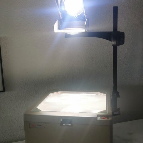 3M 1708 OVERHEAD PROJECTOR er en optisk projektionsenhed beregnet til diaspræsentationer og kunstprojektion. Denne model er udstyret med en lampeskifter og en kromatisk aberrationsjusteringsknap, som gør det muligt at placere en ny lampe uden at afbryde præsentationen og justere kromatiske aberrationer. Projektorarmen er foldbar for nem transport og opbevaring af enheden. Den er også udstyret med en kontakt til høj/lav lysintensitet, som gør det muligt at justere lysstyrken på det projicerede billede efter miljøforholdene. Enhedens tekniske egenskaber er Lumens på 2100, en brændvidde på 299 mm, en 24v og 250 watt lampe, en enkelt linse og en lampeskifter. Den sælges med omkring ti transparente film til overheadprojektor pr. enhed. Styksalgsprisen er 1500 kr.R i