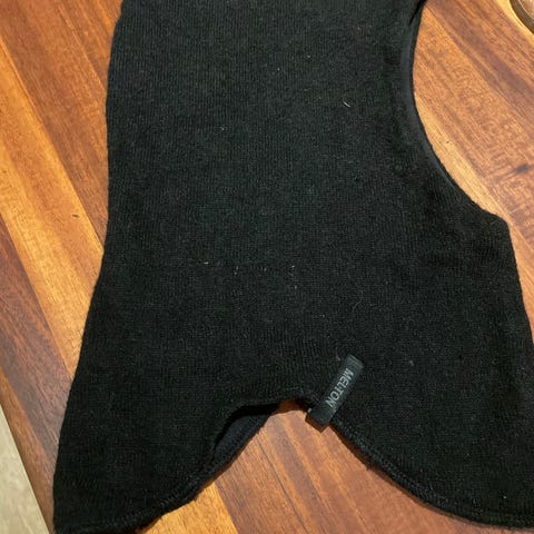Varm og blød hue af mærket Melton, str. 1-2 år. Den er aldrig brugt og ikke vasket. Bomuld yderst og dejlig blødt fleece foer. Fra dyre, og røgfrit hjem. Sender gerne.