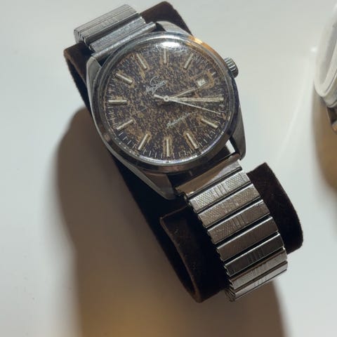 Fint vintage ur fra 60'erne med manuelt optræk. Lidt slidt kasse. Nut glas mont. Måler 33 mm målt uden kronen. Mont med en sort vintage læderrem. Uret går og holder tiden perfekt. Prisen er inkl fragt.