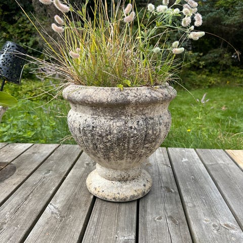 2 smukke havevaser/krukker af patineret kunststen fra ca. 1930’sælges.