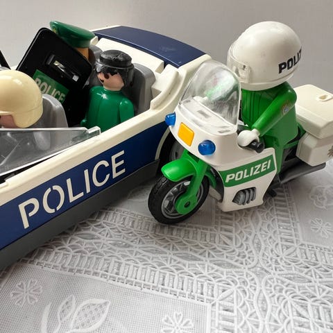 I god stand. Dette er en politibil med to figurer. Tilstanden kan ses på billederne. Hvis du har spørgsmål, så skriv til mig.