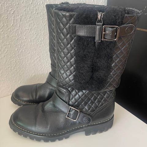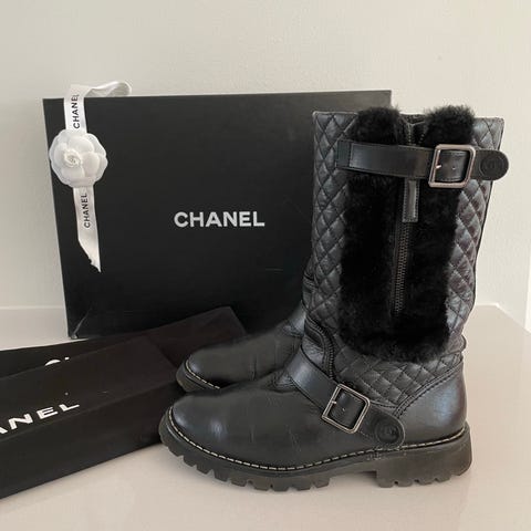 De smukkeste forede støvler fra Chanel, ubrugt, med mulighed for nemt at forvandle dem til sne støvler med pigge.