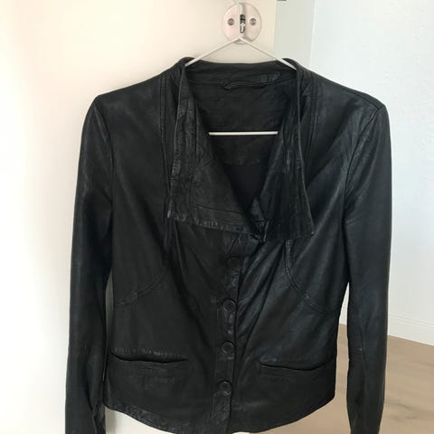 Jakken måler 36 cm enkeltsidet over ryggen.