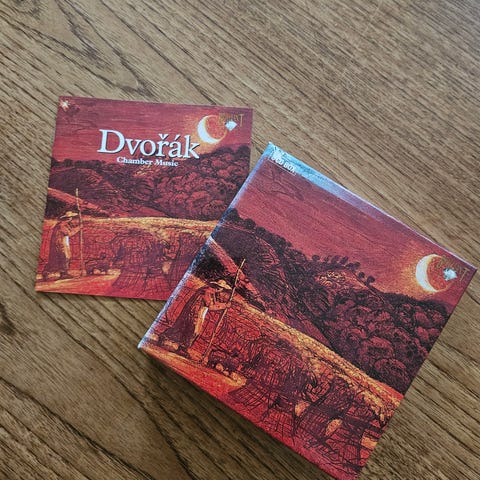 Uåbnet CD med Dahlia String Trio & John Damgaard, der spiller to strygekvartetter af Gabriel Fauré.