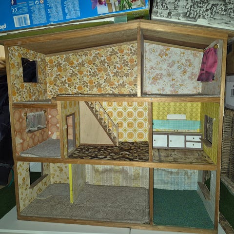 1:18 retro dukkehus møbler, brun plast. Radio, skænk, vitrine