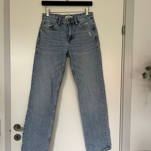 Flotte lange cowboybukser fra Pull & Bear. Str. 38. Skridtlængde 84 cm. Med 2 store lommer foran + en lille lomme. 2 lommer bagpå. I rigtig fin og intakt stand.