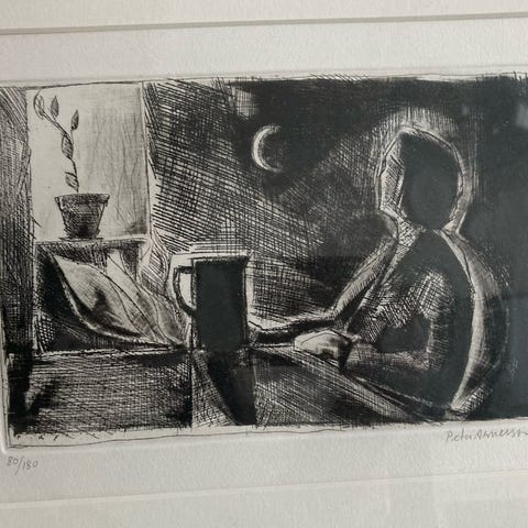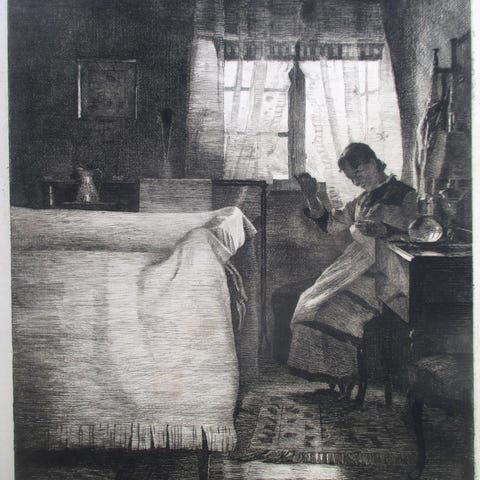 Radering, Peter Ilsted, motiv: Personer, b: 37 h: 42, Original radering af Peter Ilsted. 1866 - 1933.