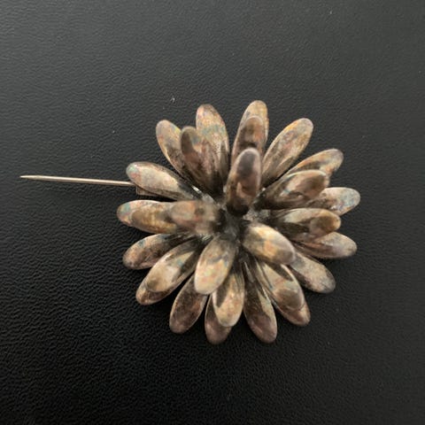 Broche, sølv, John Lauritzen, Vintage broche af sterling sølv fra John Lauritzen. Forgyldt blad med lille perle (simili) Stemplet på låsen med Sterling Denmark John L.