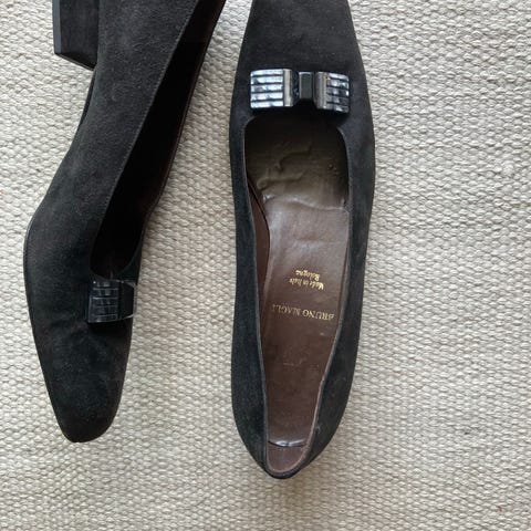 Pumps, str. 38,5, Bruno Magli, Blå, Ruskind, Næsten som ny, Den kendte og originale Italienske mærkevare, brugt en enkelt gang indendøre og i meget fin stand. Lav hæl, den lavendelblå farve er en smule mere douche end fotos’. Jeg kan ikke bruge dem pga. fodskade.