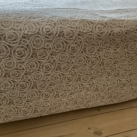 Super fedt retro Sengetæppe i harlekinmønster i orange nuancer. Super stand. Kan evt syes om til sjov jakke eller andet.