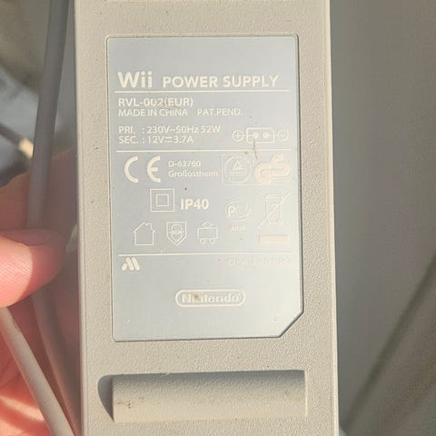 Strømforsyning til Nintendo Wii spillekonsol +12V 3,7A