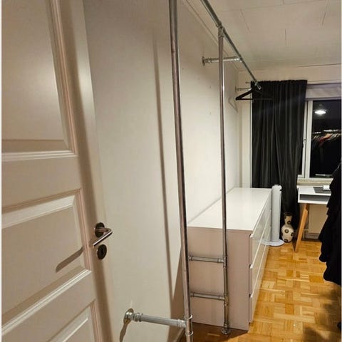 Fint hvidmalet garderobestativ til børneværelset. Brugt til prinsesse kostumer og udklædningstøj.