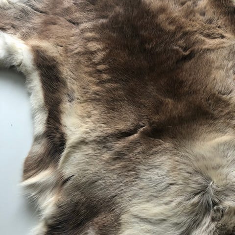 Rensdyr skind, Rensdyr, Virkeligt smukt skind. Top stand. L: 132cm B: 90!cm. Ø 240. Top rustikt til indretning eller havestue arrangement. Fæller ikke.