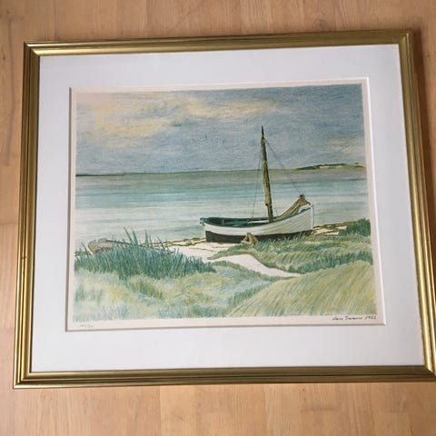 Litografi af Lars Swane i guld ramme og med passepartout