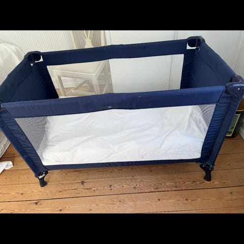 Sengen har overfladiske skrammer og brugsspor, men virker ellers upåklageligt og er nem at sætte op og pakke sammen :)