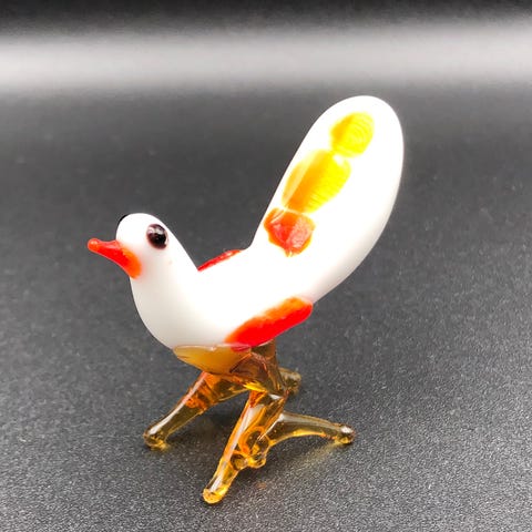 Glasfigur, fuglefigur, glasfugl, glaskunst, håndlavet glas, pyntegenstand, samlerobjekt, dekorativ figur, klart glas, vintage glas