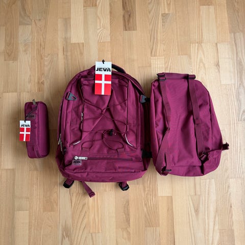 Rummelig skoletaske som kan bruges som rygsæk eller som trolley/ carry on taske - med hjul. Ny pris 950,- Pænt stand