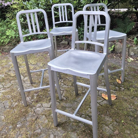 the Navy Chair has been in continuous production ever since. With the famous 77 step Process, our craftsmen take soft, recycled aluminum, hand form and weld it- then temper it for strength. Finally, the chair is anodized for a durable finish.