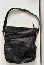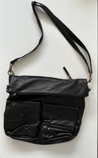 Crossbody, Depeche, skind, Rummelig taske med mange lommer både udenpå og indeni. Velholdt i skindet. Måler ca. 40 cm i højden og 35 cm i bredden. Inderforet er skredet lidt i siderne, se foto. En af metalringene på fletværket i siden har løsnet sig, men det kan limes. Ikke-ryger hjem. Sender gerne.