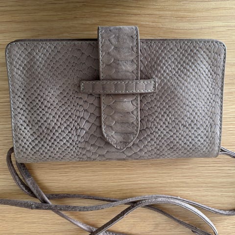 Unika clutch i sort farvet sælskind (grønlandssæl) på begge sider, måler 19 x 13 cm. Rød aftagelig håndledsrem af læder og rød lynlås. For af rødt bomuld. 2 indvendige lommer til kort og lidt større lomme. Pris kr. 400 plus fragt kr. 38.