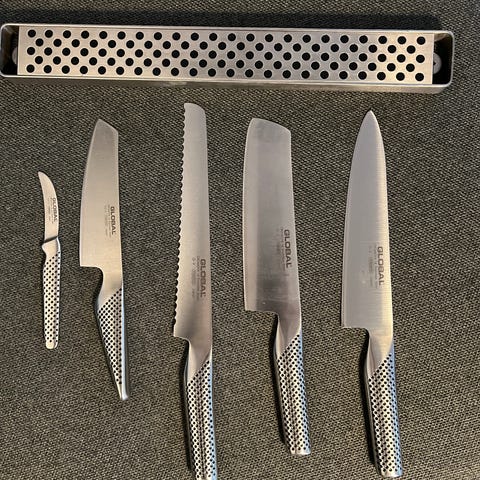 1 stk. 34 cm. Der er en lille skade i spidsen af kniven, se vedhæftet billede.